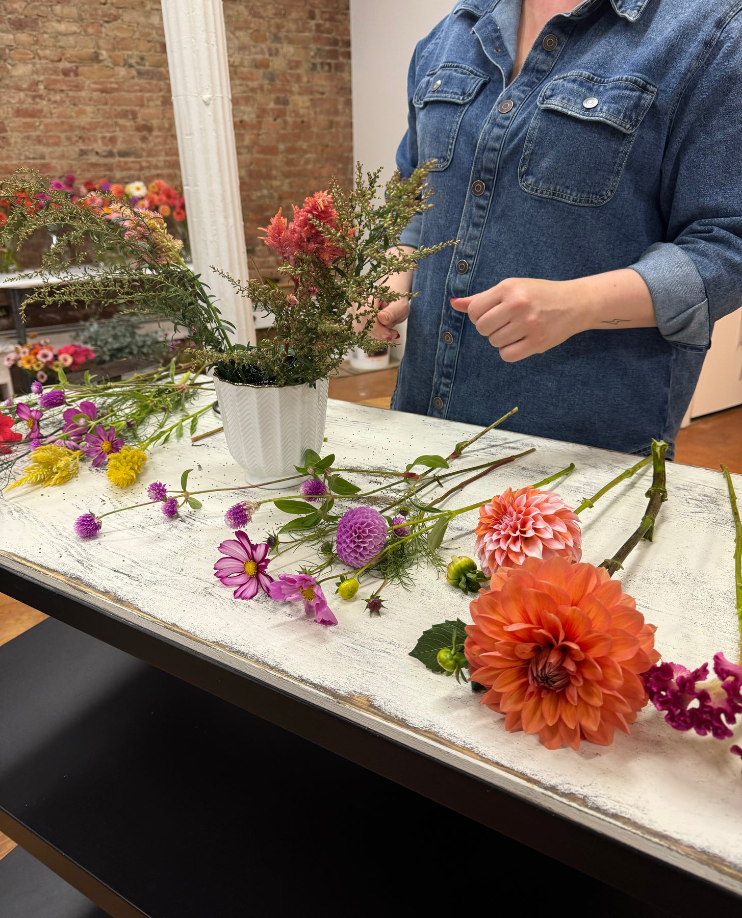 Our private workshops are designed for parties of five or more. For groups under five, please check out our public workshops. We can host at our studio for groups up to twelve or we can come to your space with all the flowers in tow! Bring your favorite snacks, beverages, music, etc. and let's get into some seasonal flower magic!